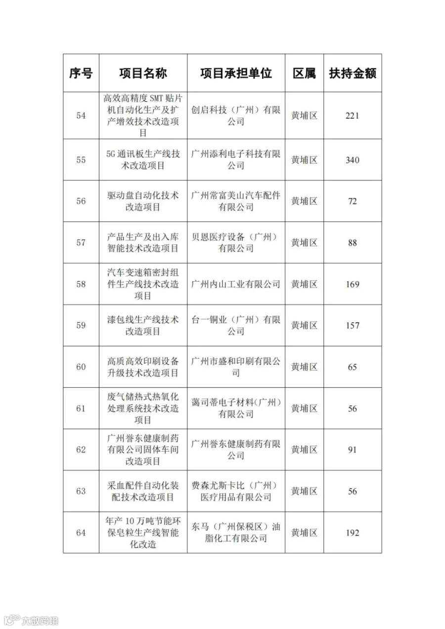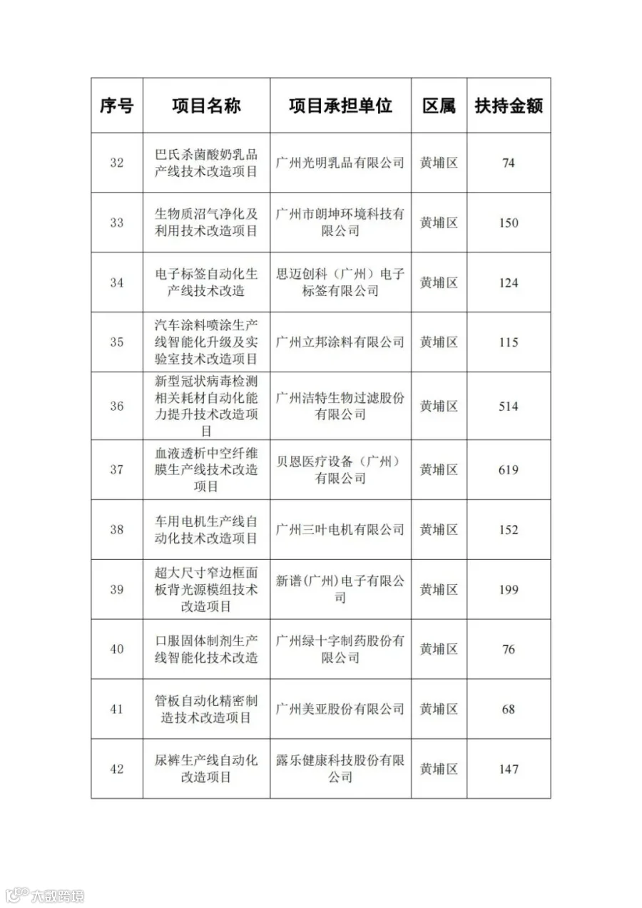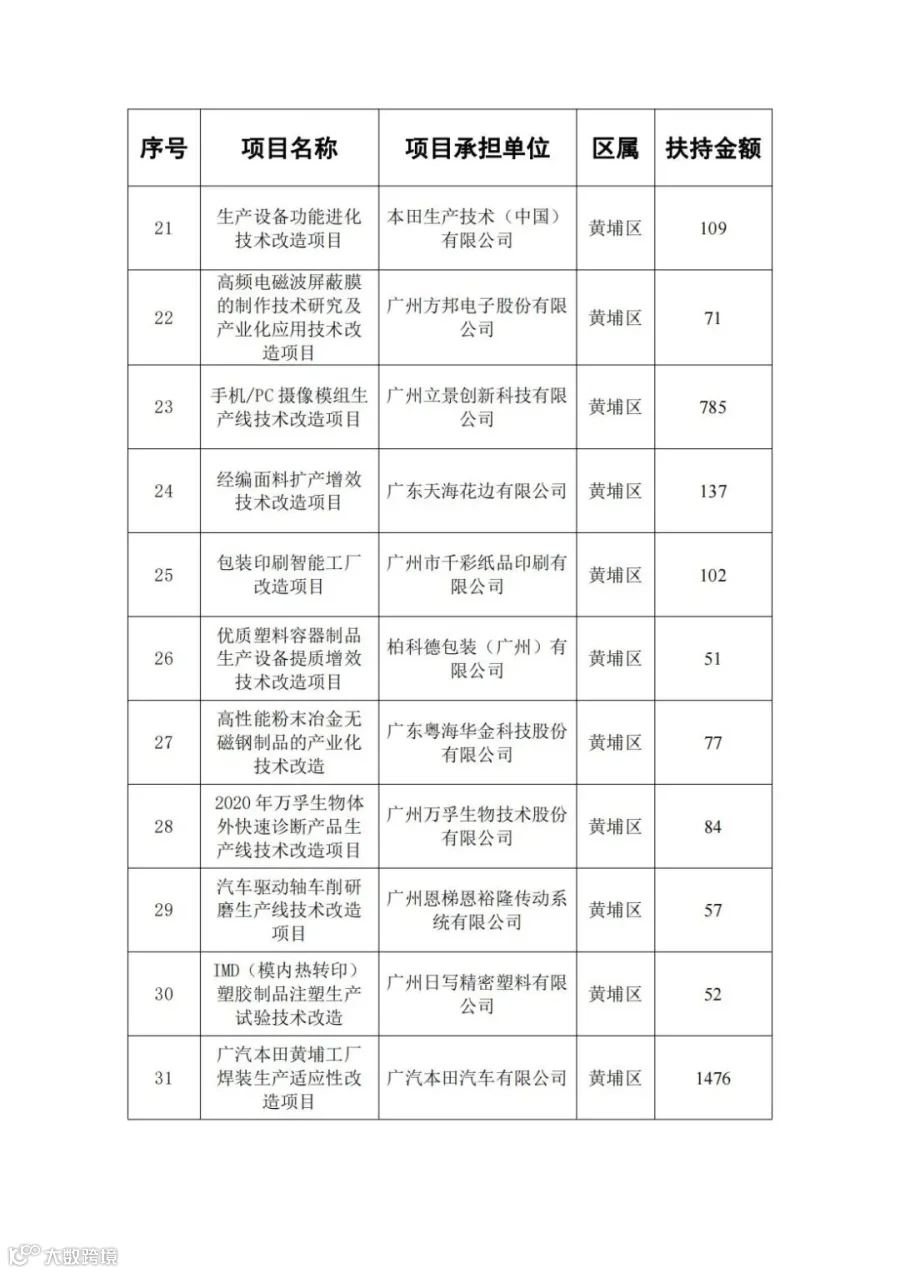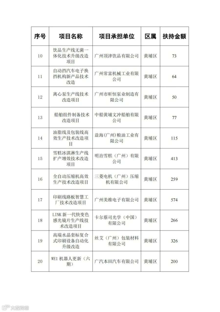 广东省省级先进制造业发展专项资金(普惠性制造业投资奖励)支持项目