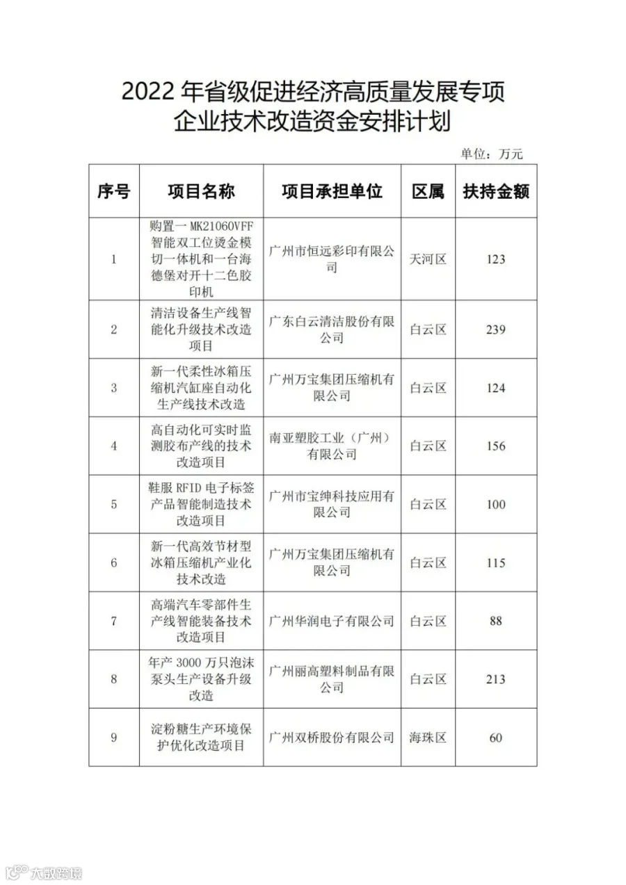 广州市工业和信息化局关于2022年省级促进经济高质量发展专项企业技术改造资金安排计划的公示。