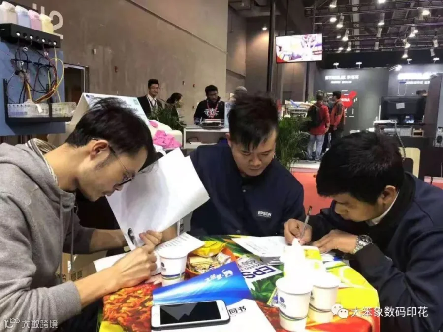 23号的琶洲。这是展会的最后一天。大笨象伙伴的那颗炙热的心也还在高温燃烧着,耐心的给每个客户解答疑问,同时也会给客户一些解决方案。就连技术人员也时不时的在旁边参与进去,生怕客户没有理解到打印机的运转。不仅让客户了解产品,还让客户意识到这台机器的使用价值在哪。授人以鱼不如授人以渔。