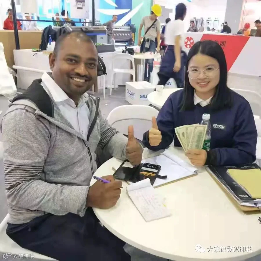 面对展会上新闻媒体的采访,专业的解答固然很重要。但在这对答如流的背后,你或许不知道,机器表面的简单操作对一个专业的销售人员来说是不够用的,你需要不断地去学习打印机的理论,不仅仅操作上,就连机器的一枚小小的螺丝钉儿你都得明白它的用处。这也是为什么大笨象的伙伴能够在第一天的早上就拿下了展会第一桶金,开门红。专业和服务很重要的,知识性也很重要。