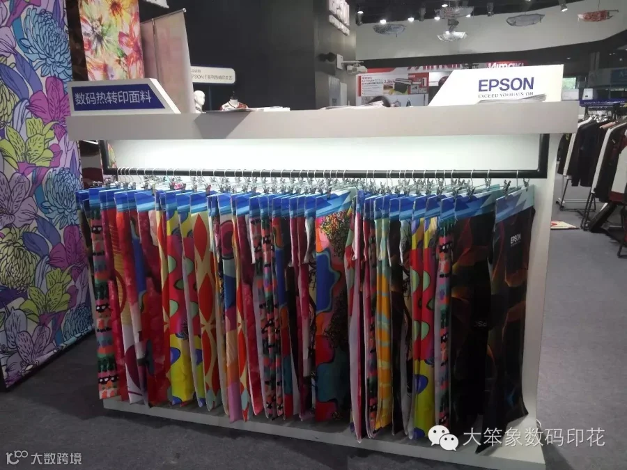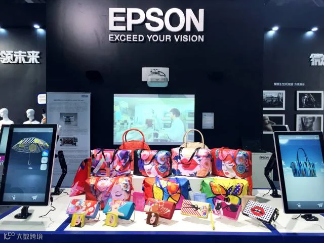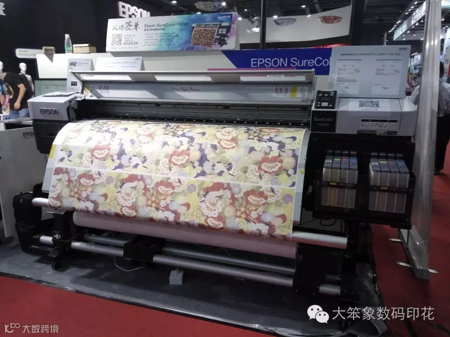 在“爱普生微喷印花”展示区, Epson SureColor F9280/F7280/F6280三款微喷印花机精彩亮相,其终端产品广泛应用于限量定制服装、鞋类、箱包、家纺、日常用品等领域,为不同的用户提供满足需求的解决方案。