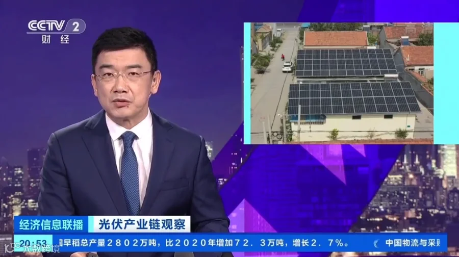 央视财经频道《经济信息联播》播出《光伏产业链观察》专题报道,聚焦光伏发电应用端市场,探讨碳达峰碳中和背景下的光伏产业发展新趋势。