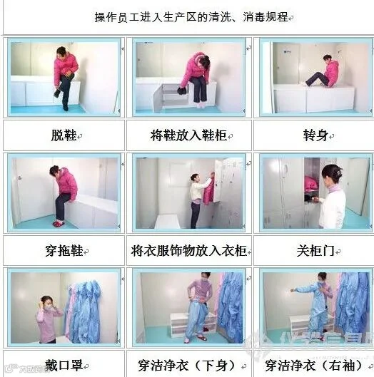 人员净化室应包括换鞋室、存放外衣室、盥洗室、洁净工作服室、气闸室或缓冲间等。为了保护人员净化室的清洁,要在更衣前将外出鞋脱去,换上清洁鞋或鞋套,在此处需特别注意两种鞋不要交叉污染,外出鞋和将要换的鞋应有明显不易随意跨越的界限。