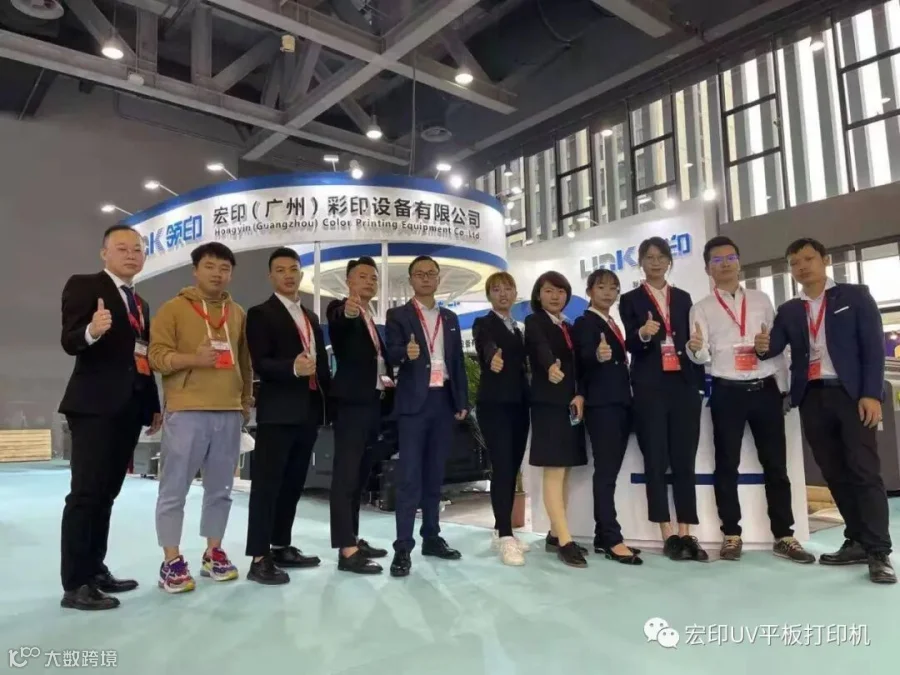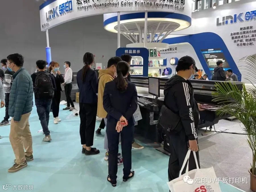 展会开展第一天,领印展位(D04)现场非常火爆,全新广告行业解决方案,具有更高产能,打印速度更快。通过提升点火频率,在同等分辨率下,单位时间的吐墨量大大提高,可以采用更少的PASS数,达到同样的效果,大大节省打印时间。引起现场很多商户围观咨询,场面沸腾,热势一触即发!