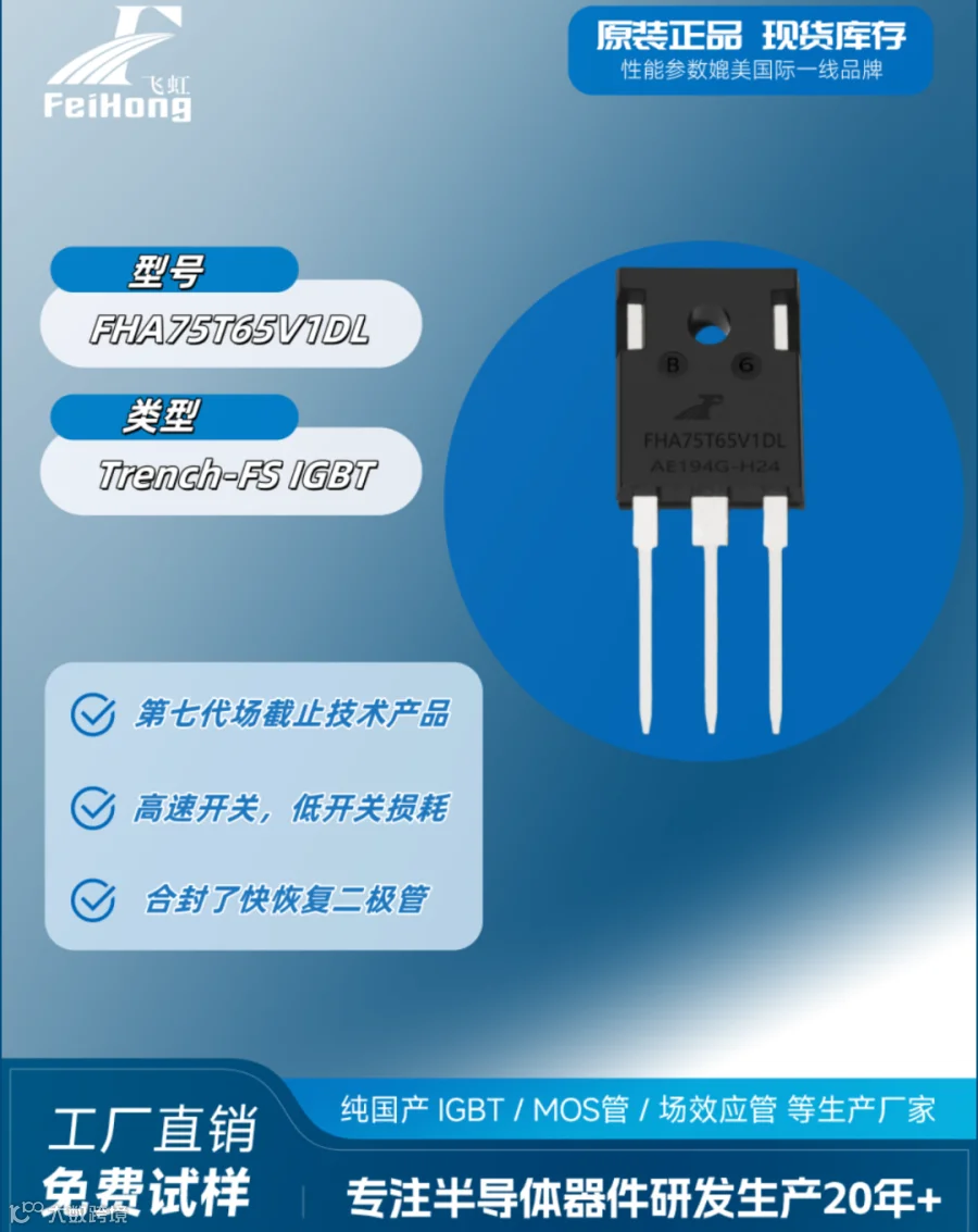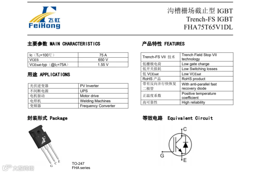 半导体领域在不断更新迭代,我们可以做好的事情就是不断强化自身供应链的稳定性。让中国产品更具备竞争力,对于不知道如何选择IGBT单管的问题。建议工程师们可以看看飞虹半导体的这一款FHA75T65V1DL型号参数。