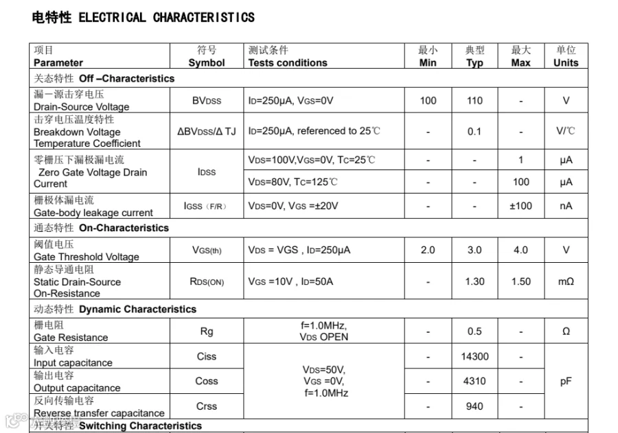 这款产品还具体参数值为:Vgs(±V):20;VGS(th):2.0-4.0V;ID(A):385A;BVdss(V):100V。
