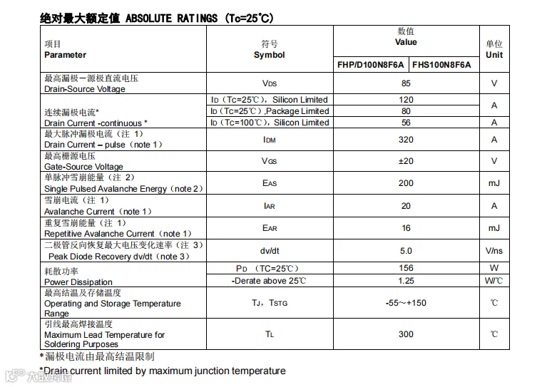 2、ID(A):120A;BVdss(V):85V