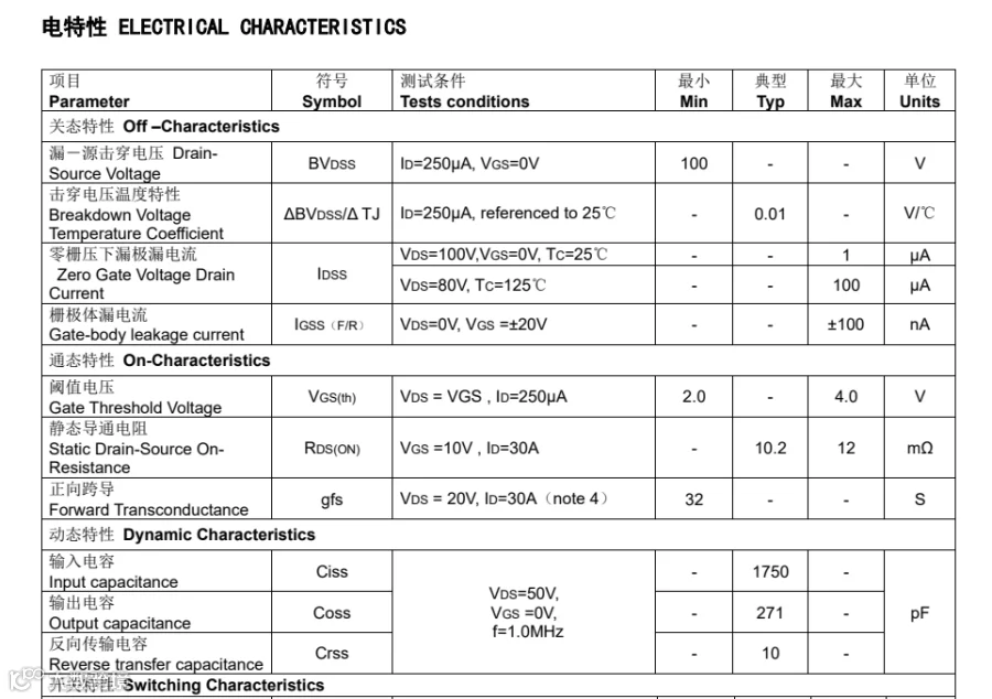 FHP30N1F10A具有60A、100V, RDS(on) = 12mΩ(max) @VGS =±20 V,具备100% EAS测试,100% Rg测试,100% DVDS测试,极低的FOM(RDSON*Qg),极低的输入电容的特点。