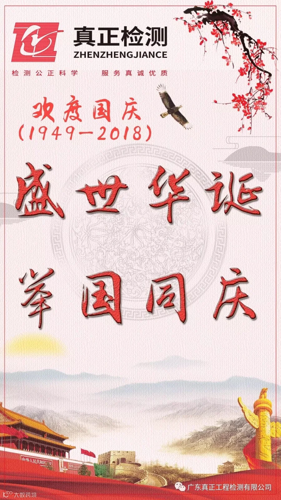 广东真正工程检测有限公司在这充满喜庆的秋天,即将就要迎来2018年的国庆节了。在这伟大的日子里,让我们真心为祖国送上最美好的祝福。