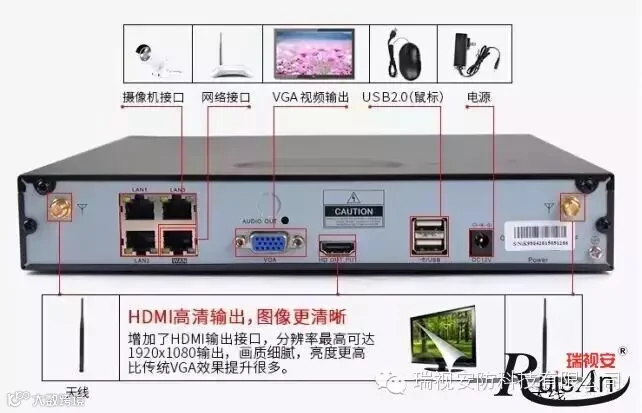 主机内置工业级专用增强型无线路由,双天线,只支持摄像机通过私有协议链接录像机,不支持其他第三方硬件信号接入,无线信号更稳定,空旷距离70米,抗干扰能力和墙体穿透能力强。