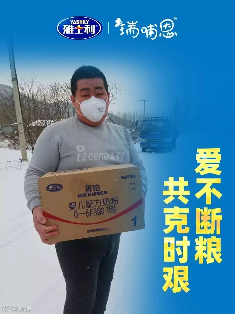 为了帮助宝妈们切实解决烦恼,雅士利配送员闪现于街头巷尾中,穿梭在一个个城市的风雪中,用脚步丈量城市空旷的街道,交织出一张守护宝宝的巨大保护网,更行驶在一趟趟温暖的送“奶粉”路上,为宝宝传递新鲜的口粮而全力以赴。即使历经千辛万苦,他们也迎难而上不退缩,齐心协力扛起责任担当!