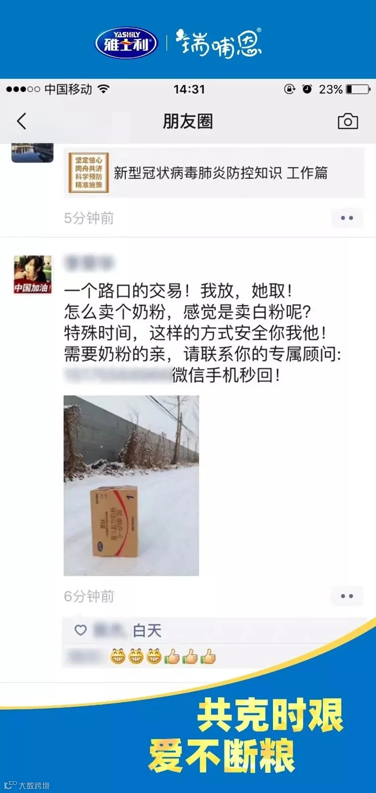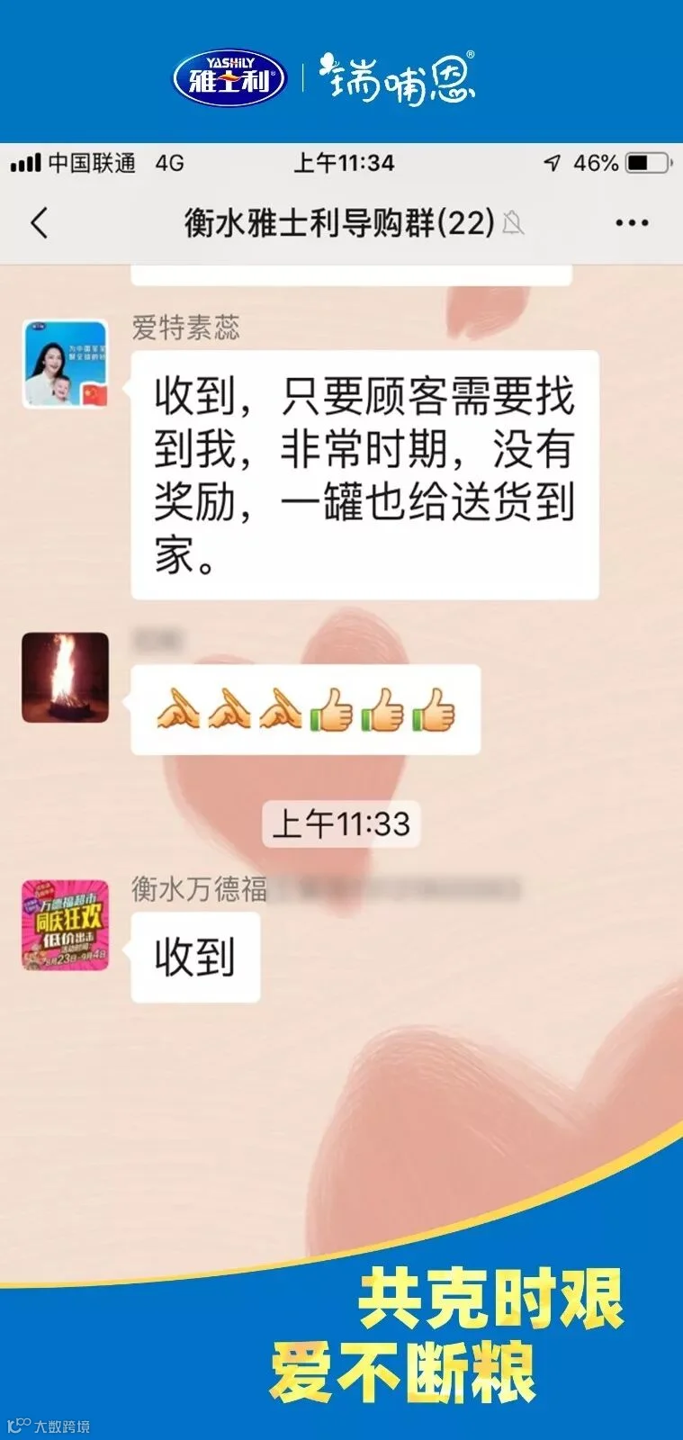 最近,很多宝妈在微信群、后台发出了类似的口粮告急的讯号,雅士利导购员用实际行动彰显责任和担当,竭尽所能将口粮送到宝妈们手中,呵护宝宝健康成长。