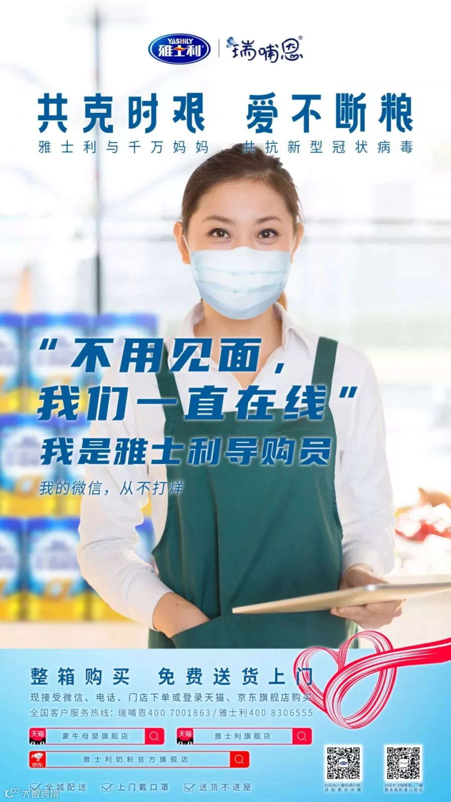 为了解决宝宝“断粮”的问题,雅士利导购员们实时在线服务,以更加用心的态度、更有温度的服务,全力保障宝宝口粮不断档,为千万妈妈解决后顾之忧。她们不仅严格做好自身的科学防护,也贴心地注意到宝妈们的需求:在这个特殊时期,提供免费的门店上门“无接触”配送服务,为宝宝提供充足的新鲜奶粉,有效解决宝妈宝爸所担心的宝宝“口粮危机”。