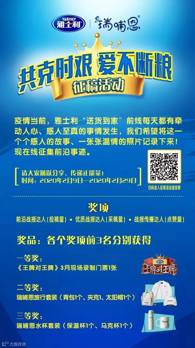 在这场没有硝烟的战场上,有人不畏艰险冲锋在抗击“疫”线,也有人尽己所能坚守岗位负重前行,他们用一个个暖心举动,为抗击病毒发挥自己不平凡的力量,温暖这个特殊的春天!抗“疫”非常时期,暖心的故事每天都在上演,雅士利瑞哺恩发起“关于送货一线的感人故事”征稿活动,参与方式为: