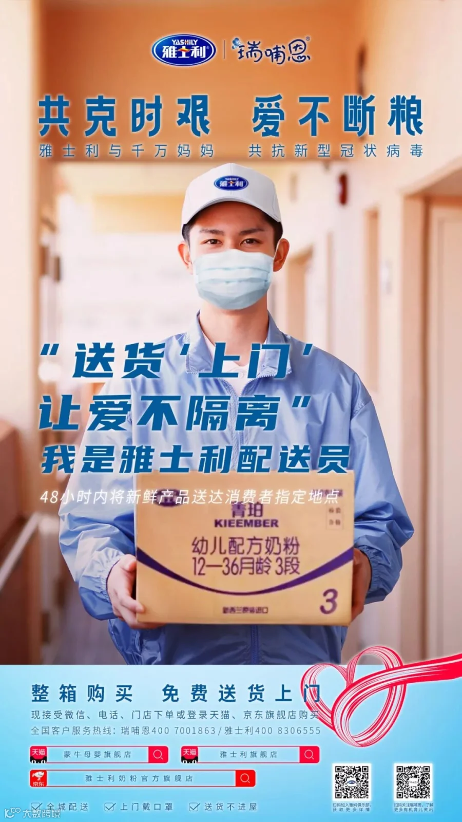 作为国内乳业知名品牌的雅士利国际,也肩负起社会责任, 积极部署相关措施,从安全保障、服务保障、货源保障等方面,为千万母婴家庭保驾护航,助力宝宝健康成长。全体雅士利人以“逆行者”的姿态义无反顾,忙碌在不同的城市中、不同的岗位上,提供免费上门“零接触”配送服务,向中国宝宝传递源源不断的营养和健康。