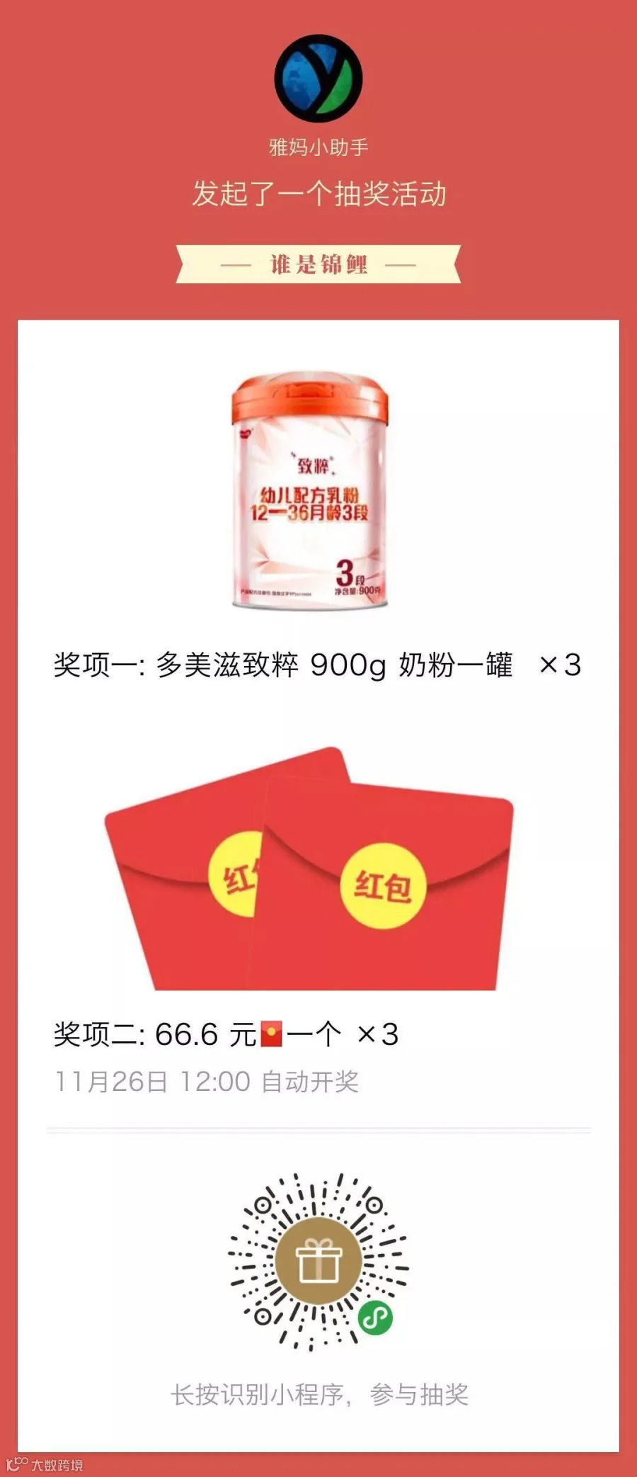 独乐乐不如众乐乐,将雅士利国际的这份喜悦传递下去,长按识别小程序码,参与抽奖即有机会获得现金红包或多美滋致粹一罐。