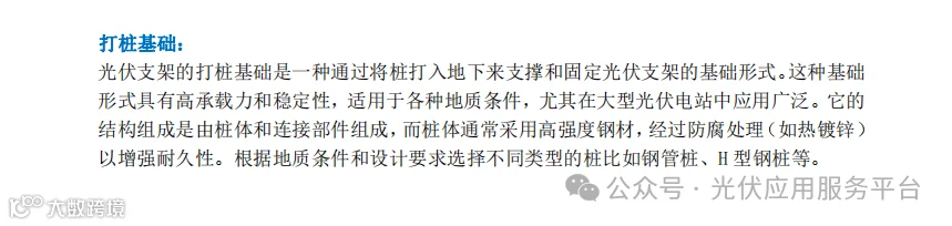 施工步骤:场地准备,地址勘探,定位,打桩,连接支架。通常应用在大型光伏电站,风力较大,地质复杂的地方。