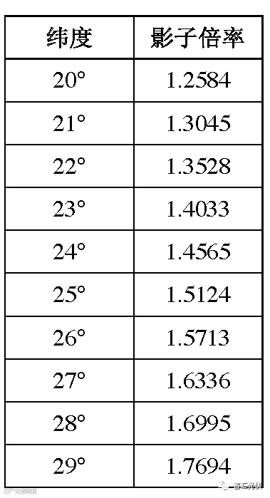 若某地的纬度为25°根据表2,其影子倍率为1.5124