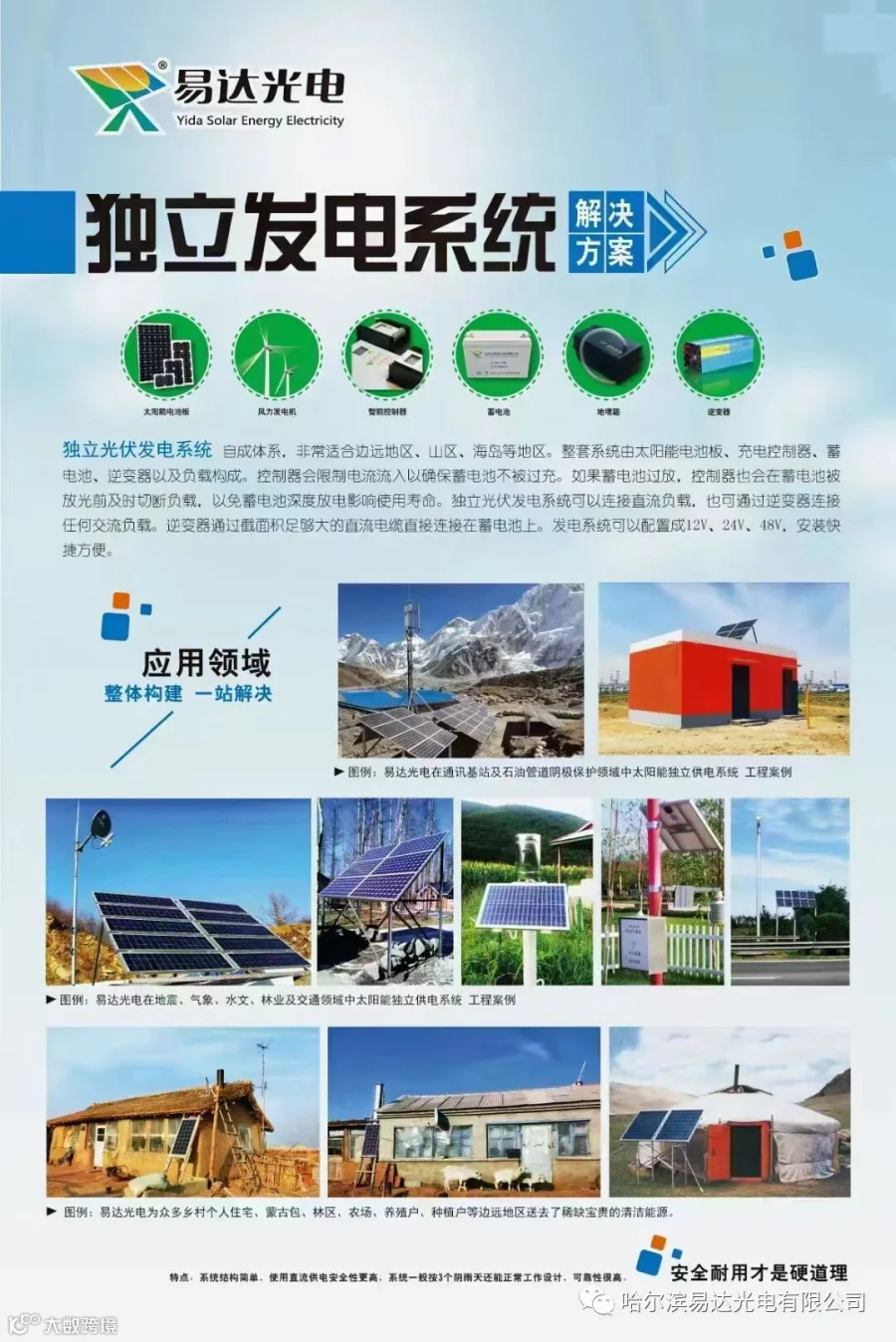 光伏组件、离网逆变器(包含光伏充电器/逆变器)、储能电池(/胶体/三元锂/磷酸铁锂等类型)、光伏支架、线缆,以及配电箱等,均是光伏离网系统的重要组成部分。