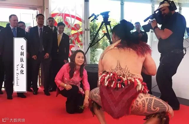 战舞结尾,毛利部落卫士长诚挚地在地上放下新西兰国花——银蕨叶,这是毛利对外来宾客最隆重的欢迎礼仪。蒙牛乳业总裁、雅士利国际集团董事长孙伊萍俯身拾起,以示和平友好。