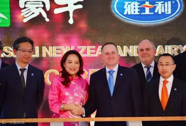 新西兰总理约翰•基、经济发展部长斯蒂文•乔伊斯、中国驻新西兰大使王鲁彤、蒙牛乳业总裁、雅士利国际集团董事长孙伊萍、雅士利国际总裁卢敏放以及中新两国政府官员、奶协等行业人士,共同见证了中国乳企“走出去”这一标志性事件。