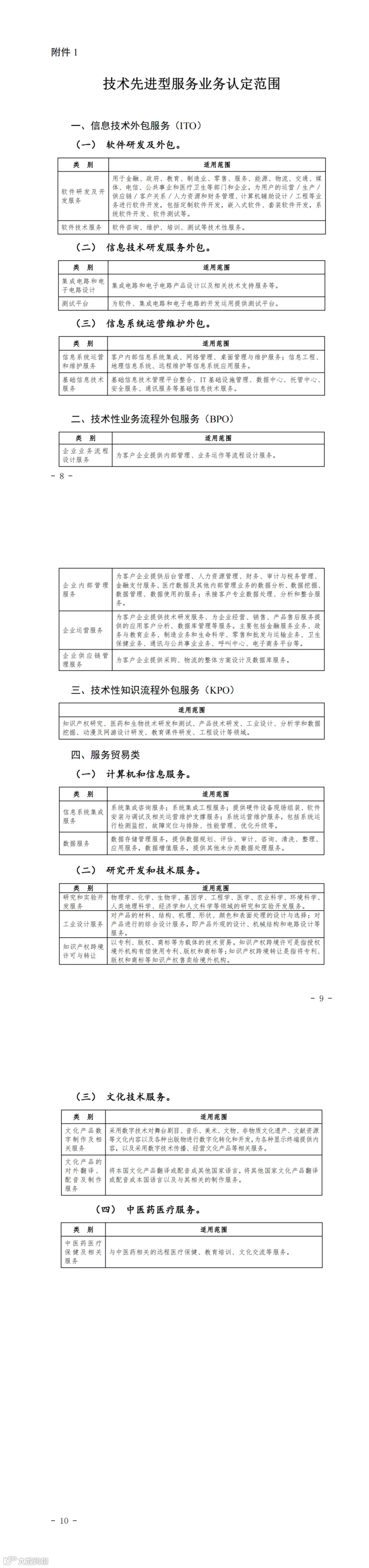 (二) 从事《技术先进型服务业务认定范围(试行)》(详见附件1)中的一种或多种技术先进型服务业务,采用先进技术或具备较强的研发能力。