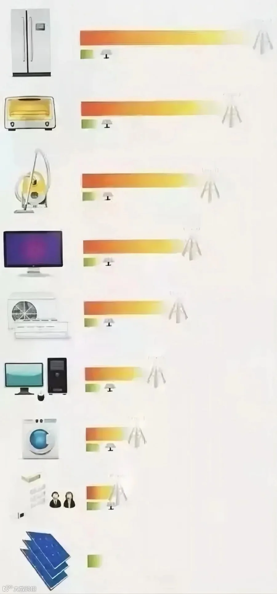 光伏发电系统的电磁环境指代存在于光伏系统周边的由于光伏系统运行产生的电磁现象的总和。在电力领域中,通常将50Hz(或60Hz)频率称之为“工业频率”(简称“工频”)。在我们生活环境中使用的家用电器,如电视机、吸尘器、冰箱、电热毯、电动剃须刀等均会产生工频电磁场。经科学测定,太阳能光伏发电系统的电磁环境低于各项指标的限值,在工频段,太阳能光伏电站电磁环境甚至低于正常使用常用家用电器时产生的量值,不会对人身健康产生影响。