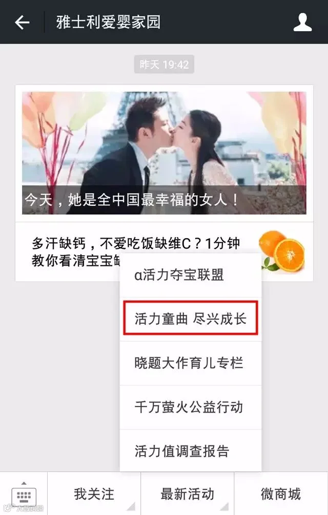 找到小雅家的公众账号【雅士利爱婴家园】
