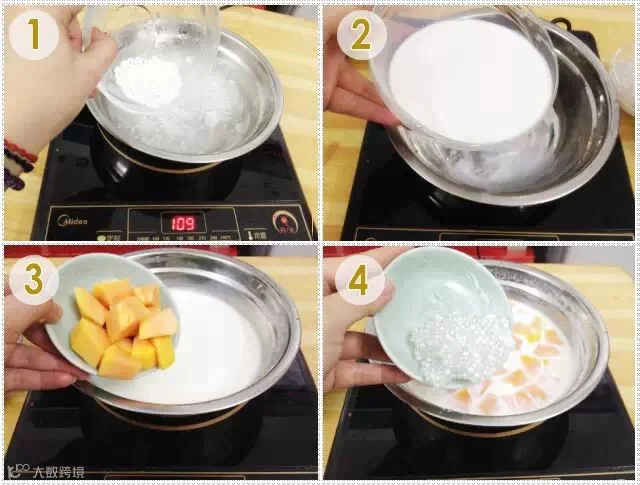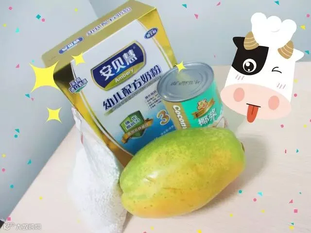 雅士利奶粉20g、椰浆若干、西米、白砂糖8g、木瓜。