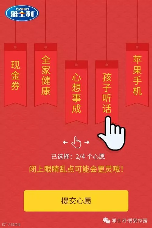 选择四个心愿后,并点击提交心愿