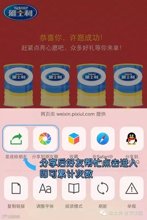 分享朋友圈或发送给好友点亮心愿