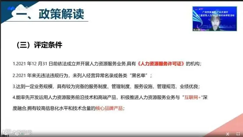 为充分调动人力资源服务机构积极性,激发人力资源服务机构新活力,助力黄埔区人才集聚,广州科瑞投资服务有限公司在广州市黄埔区人力资源和社会保障局指导下组织开展“广州市黄埔区 广州开发区第三届优秀人力资源服务机构评定活动”线上政策宣讲会。本次宣讲会共50余家人力资源服务机构参与,并获得参会企业的一致认可,有效提高了政策知晓率,切实解决了企业申报问题。