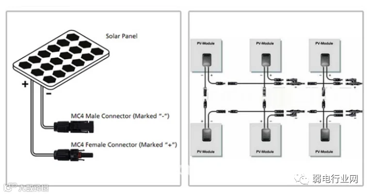 3)太阳电池组件间连线原则:
