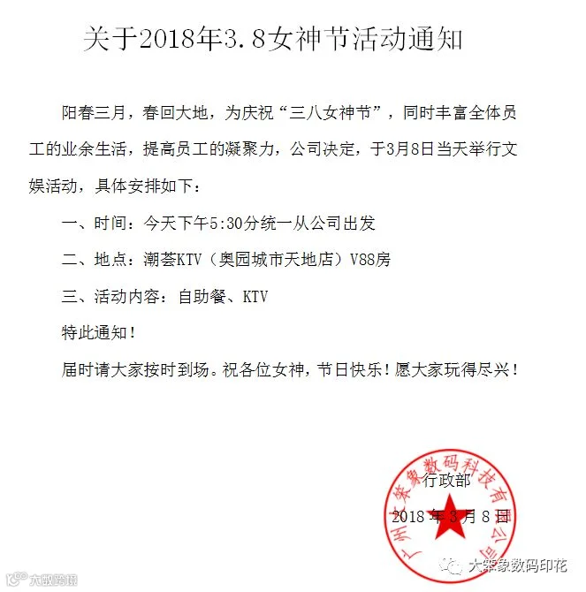 我们的女神节和生日会到此也圆满地结束了,两者的碰撞产生了不一样的化学效应。好玩的活动虽然过去了,但我们的激情并没有褪去。我们大笨象不仅是一个有爱的团队,我们还是一个专业优质的供应商!一站式数码印花设备解决方案尽在大笨象!想要买机器,买材料,买设备?首选大笨象!选择了大笨象,就是选择了专业,就是选择了品质!我们期待与你的相遇.......