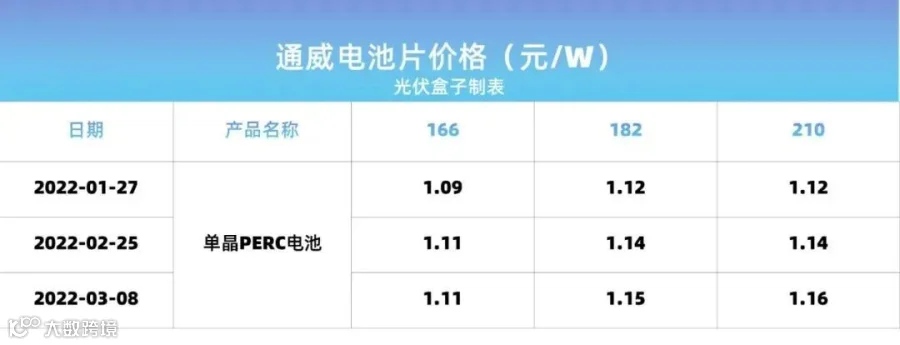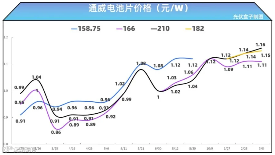 电池片近期价格走势