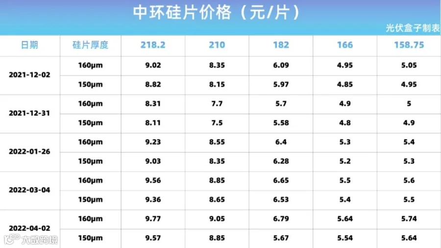单晶硅片价格走势