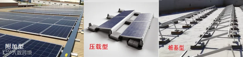 不同的屋顶安装光伏组件的方法也不一样,常见的安装方式包括附加型、压载型及桩基型。