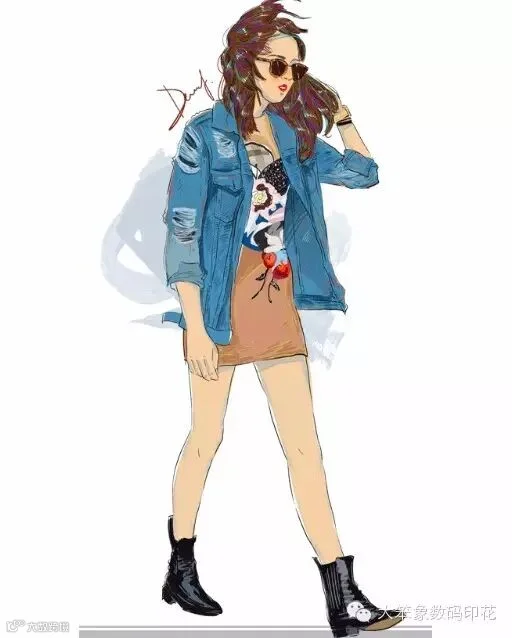 立体印花的大地色短裙,搭配破洞牛仔外套透露出叛逆小性格,一件比较复杂的印花不再让人产生距离感,琥珀色的墨水镜搭配一双短靴,青春气质满满溢出