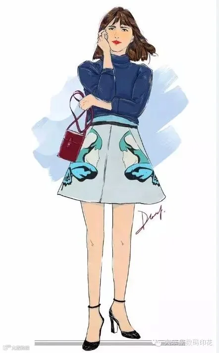 普通A字裙不如有大片特色印花的来得直接,高腰搭配一件高领海军蓝毛衣,酒红色包包让整体色彩不单调