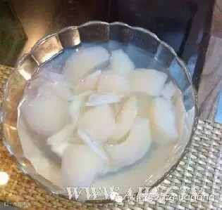3.把雪梨块、百合放入砂锅中,加入适量的水,小火煲20分钟,加入冰糖溶化后,即可食用。