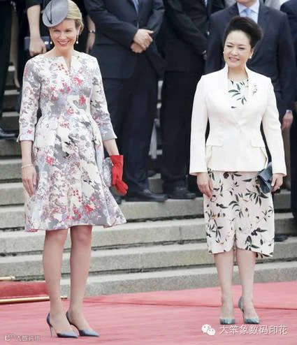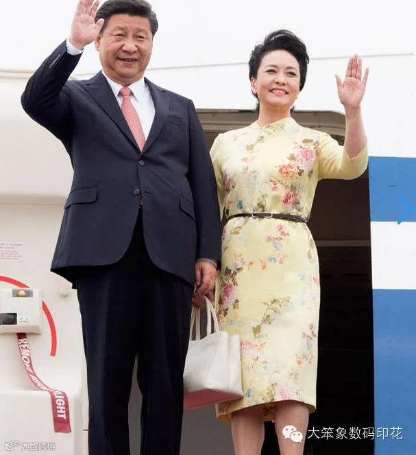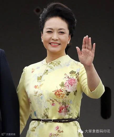 彭麻麻一改往日纯色套装的经典风格,身穿印花连衣裙亮相,清新亮丽,淡雅大方。