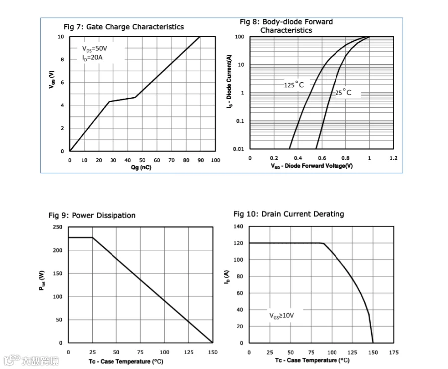 具有172A、100V的电流、电压, RDS(on) = 4.4mΩ(MAX) @VGS = 10 V,RDS(on) =3.6mΩ(TYP) @VGS = 10 V,最高栅源电压@VGS =±20 V。