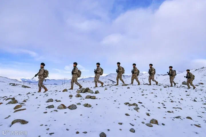 2024年2月9日,驻守帕米尔高原的新疆军区某边防团红其拉甫边防连官兵踏雪巡逻。新华社发(姬文志 摄)