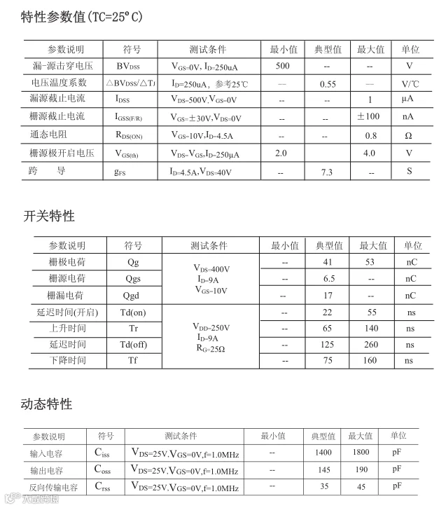 300W逆变器后级电路常用的一款场效应管是9N50,目前逆变器已经广泛应用在空调、电动工具、电脑、电视、洗衣机、抽油烟机、冰箱、按摩器、风扇、照明等产品,面对如此广泛的使用情况如何再使用一款能够匹配9N50型号参数的MOS管呢?