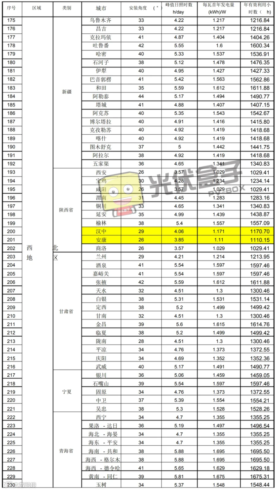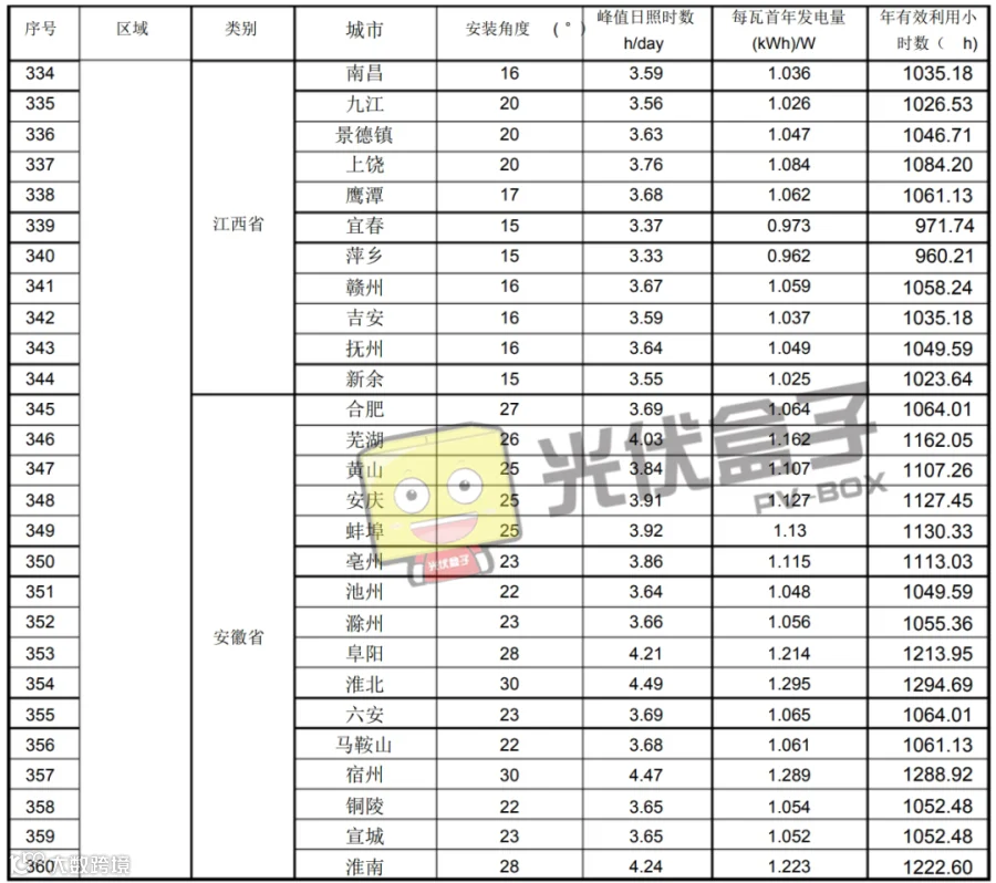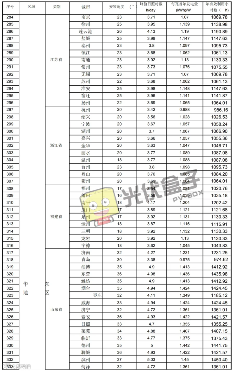 小编在此汇总了全国地面光伏电站最佳安装角度及发电量查询表,如下: