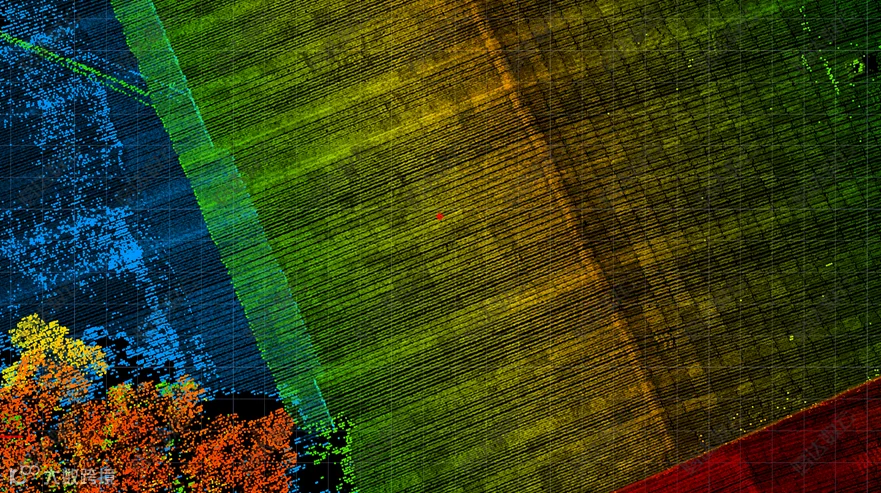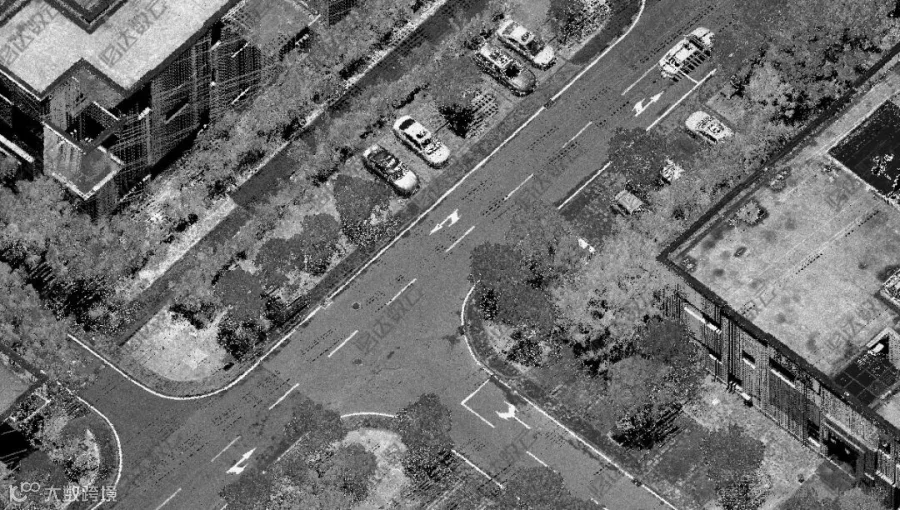 支持4次回波探测,多回波技术具备穿透植被到达地面,从而获取到地面点云的能力,解决了传统航测在植被茂盛地区无法获取高精度地形的问题。激光雷达信号多回波功能不仅能够增加点云数据信息,对于地面植被分离,消除路侧树木遮挡具有重要意义。图为多回波效果展示图,绿色为穿透树后的回波信号。