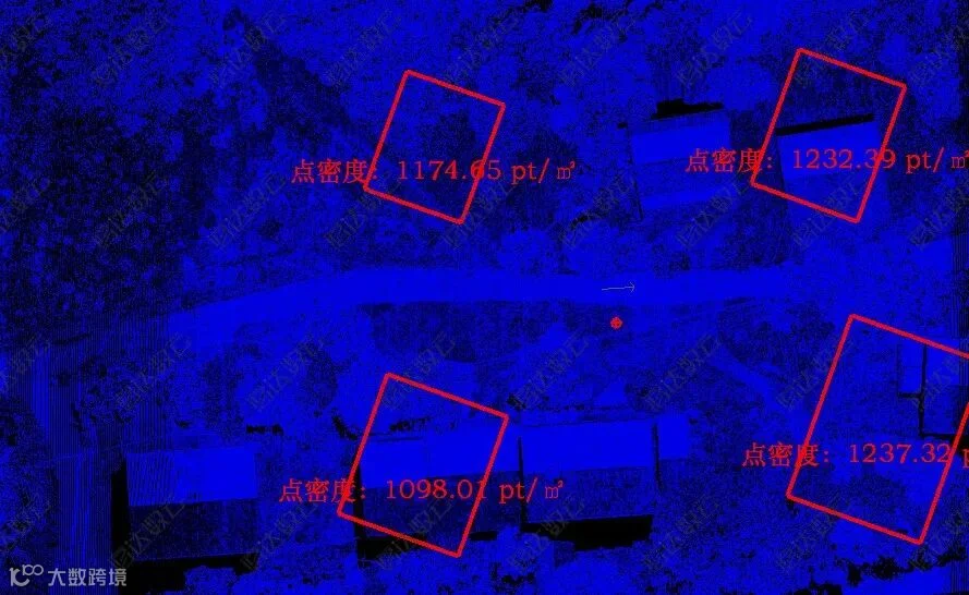 智喙PM-1500档位设置为500K,飞行高度200m,飞行速度7m/s,点云密度如图所示。
