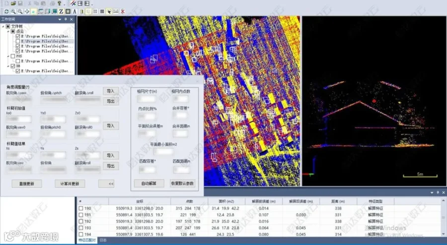长测程扫描会降低点云密度及地物识别度,影响系统选点标定精度,同时也需要更高要求的标定场地。为保证长测程系统精度,采用了独特的全自动检校标定技术,适应绝大多数普通场景下采集的标定数据,无需人工在点云中选点和量测计算,通过先进的全自动特征搜索和匹配算法,一键式完成标定,大幅提升标定效率和标定精度。