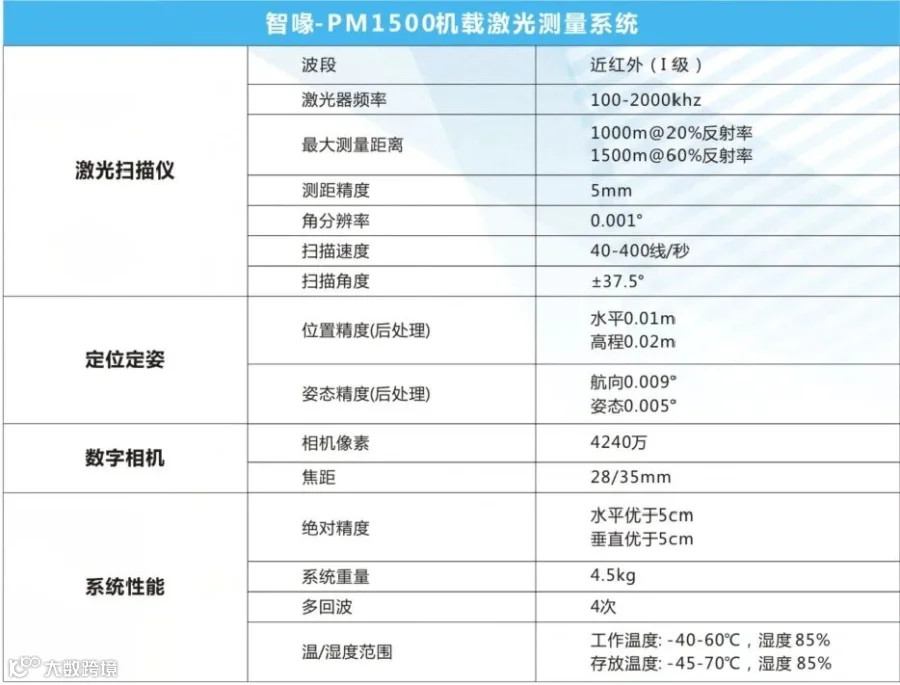 智喙PM-1500机载激光测量系统满足-40-60℃工作温度范围。