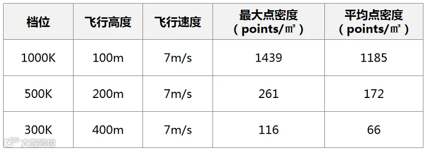 智喙PM-1500档位设置为300K,飞行高度400m,飞行速度7m/s,点云密度如图所示。